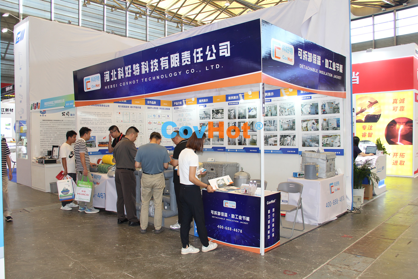 步入展會大廳,仿佛置身于保溫材料的未來世界。從巖棉、玻纖棉、硅酸鋁棉、鋁箔、氣凝膠等保溫材料,到新式的真空絕熱板、保溫涂層、可拆卸保溫套等保溫制品,各種新型保溫方式爭奇斗艷。眾多知名品牌紛紛展示其最新研發成果,讓我們真切感受到了科技為保溫行業帶來的巨大變革。我公司推出的新型可拆卸式保溫套,不僅具有卓越的保溫性能,還具備出色的防火、防水等特性,為工業節能提供了全新的解決方案,同時我們的產品也得到了現場眾多客戶的認可和好評。