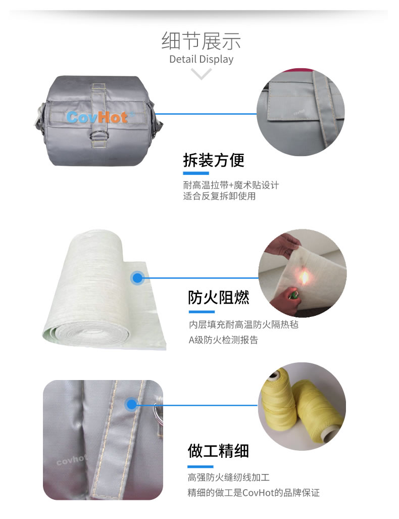 防腐蝕可拆卸法蘭閥門保溫套,保溫絕熱性能優良,能耐高低溫,尤其適用于不同工業設備、閥門、管道等的保溫隔熱需求。