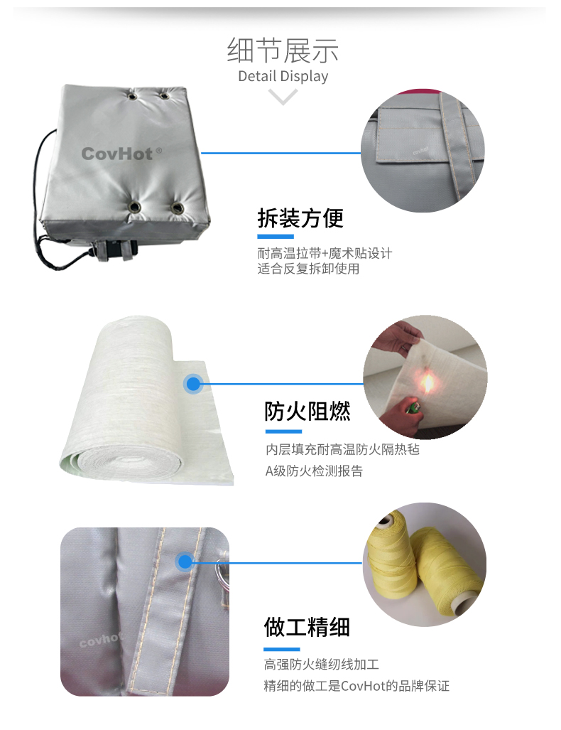 首先,電伴熱保溫套由于其特殊的柔軟性,要注意不能暴力擠壓,在安裝電伴熱保溫套是要先進行檢查,看設備是否有尖銳部分,防止尖銳部分破壞保溫套的絕緣層導致漏電事故發生。